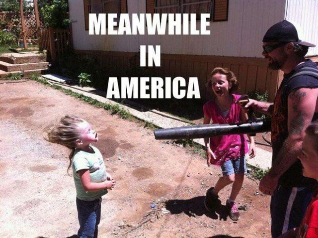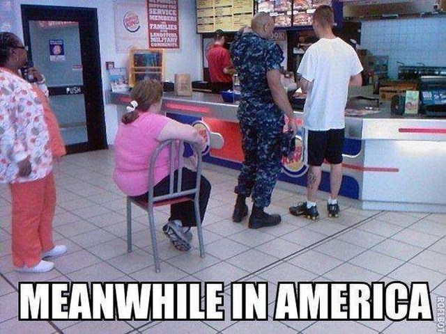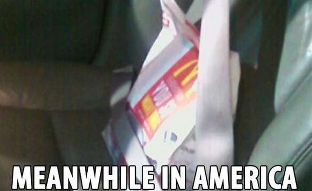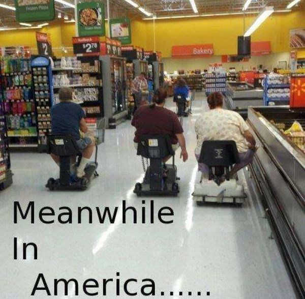 Мы уже не раз показывали снимки, которые можно сделать только в России. В противовес этим фотографиям выступают снимки типичных американцев из серии "Тем временем в Америке", которые демонстрируют как живут люди в США.
