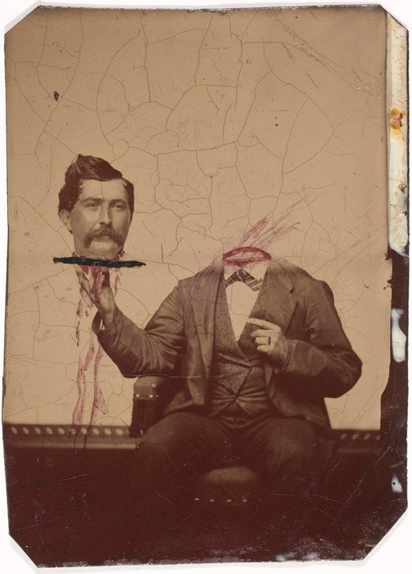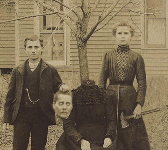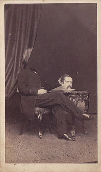 В далёком 19 веке, во времена Викторианской эпохи, в Великобритании, фотографы с помощью фотоманипуляций научились отделять голову от туловища на снимке. Откуда у людей того времени была такая тяга к насилию не ясно, но такие фотографии были на пике популярности.