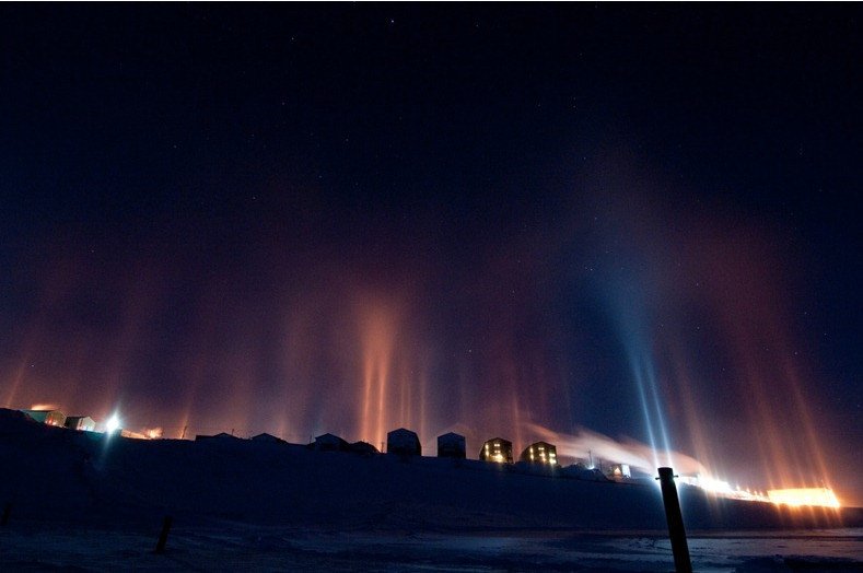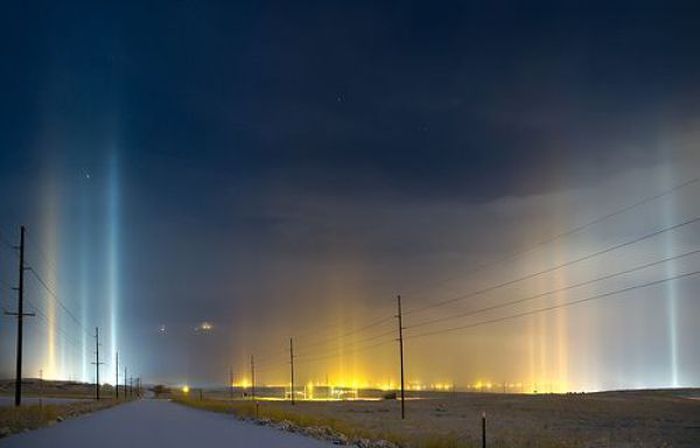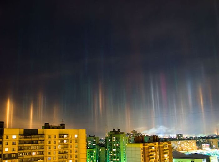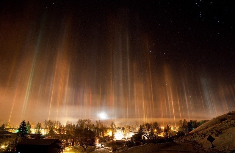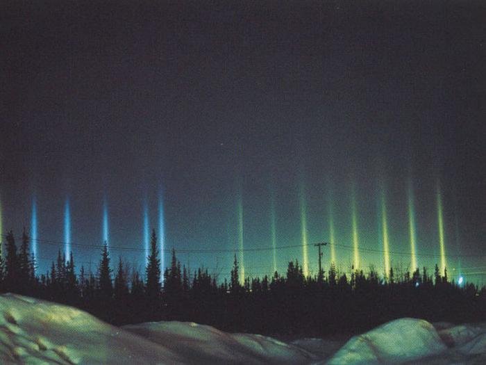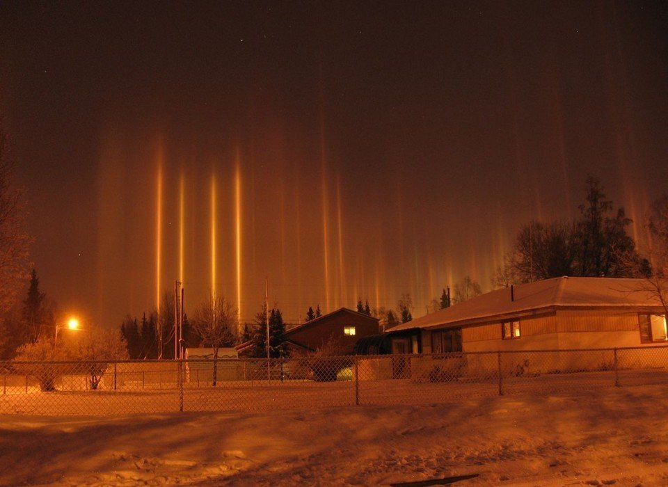 Это визуальное атмосферное явление происходит при отражении искусственного или естественного света, попадающего на грани ледяных кристаллов, содержащихся в воздухе. Источник света, находящийся близко от поверхности либо на самой поверхности Земли, вызывает появление светового столба над парящими кристаллами.
