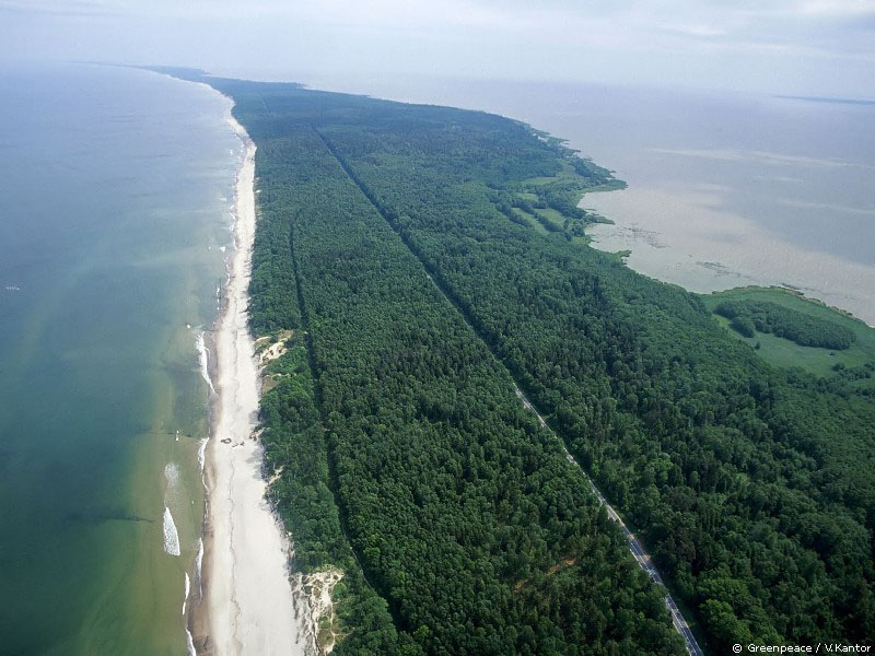 Ее длина - 98 км, ширина изменяется от 400 м до 4 км. Куршская коса - уникальный природно-антропогенный ландшафт и крупнейшее песчаное тело, аналогов которому нет в мире. Разнообразие ландшафтов на косе от пустынных (дюны) до тундровых (верховые болота). Рельеф и расположение Куршской косы дают основания называть ее «птичьим мостом». По нему проходит древний миграционный путь птиц из северных районов Европы в южные и в Северную Африку. Ежегодно над косой пролетает до 20 миллионов птиц. Больше 70 процентов территории занимают леса, в которых произрастает около 600 видов деревьев, кустарников и трав. Многие деревья на косе слегка изогнуты. На участке "Танцующий (или пьяный) лес" особенно много таких деревьев, и стволы их изогнуты сильнее, чем в среднем на косе. Фауна насчитывает 296 видов наземных позвоночных животных - кабаны, лисы, косули и другие. Также здесь действует старейшая в Европе орнитологическая станция, которую основал немецкий теолог и любитель птиц Иоганн Тинеман в 1901 году.