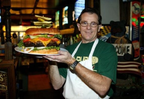 Многие рестораны создавали огромные бургеры для рекламы, но сотрудники одной забегаловки зашли так далеко, что приготовили бургер весом в 2,7 килограмма. Рецепт включает в себя две целые луковицы и два целых помидора, а также одну головку салата-латука. Ресторан также предлагает менее крупные бургеры, весом всего в 1,3 килограмма, если вы в тот день не очень голодны. Как и во многих ресторанах, если вы сможете съесть всю корову, которую они засунули в целые батоны, этот ресторан даст вам какой-нибудь приз, например бургер будет бесплатным для вас.