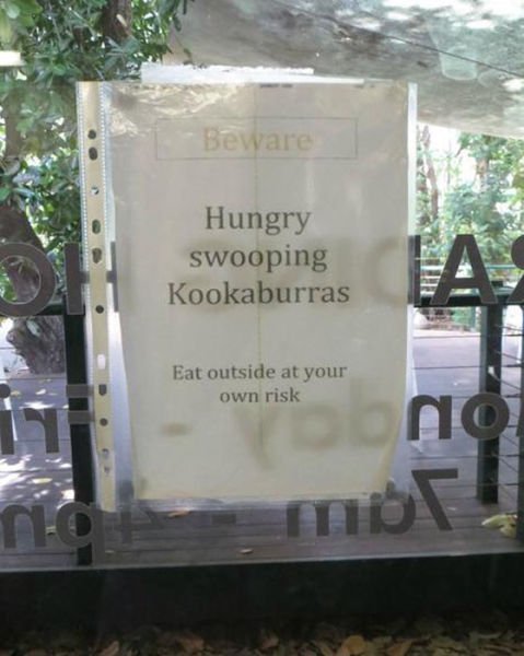 "Берегитесь возможного нападения голодных кукабар (прим. гигантских зимородков). Есть за пределами заведения вы можете только на свой страх и риск"