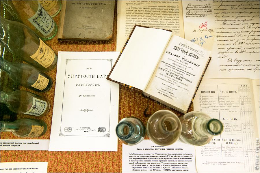 «Винокурная лаборатория устроена с двоякую целью: для практических упражнений студентов и для исследования новых процессов винокурения. Размеры поставленных в ней винокуренных приборов дают ей вид небольшого винокуренного завода. Для Затора винокуренных материалов имеется чан в 120 ведер емкости, с механическим заторным аппаратом. Для перегонки служит непрерывно действующий колонновый аппарат Саваля, размером на 6 гекталитров бражки в час.» Известия СПб ПТИ