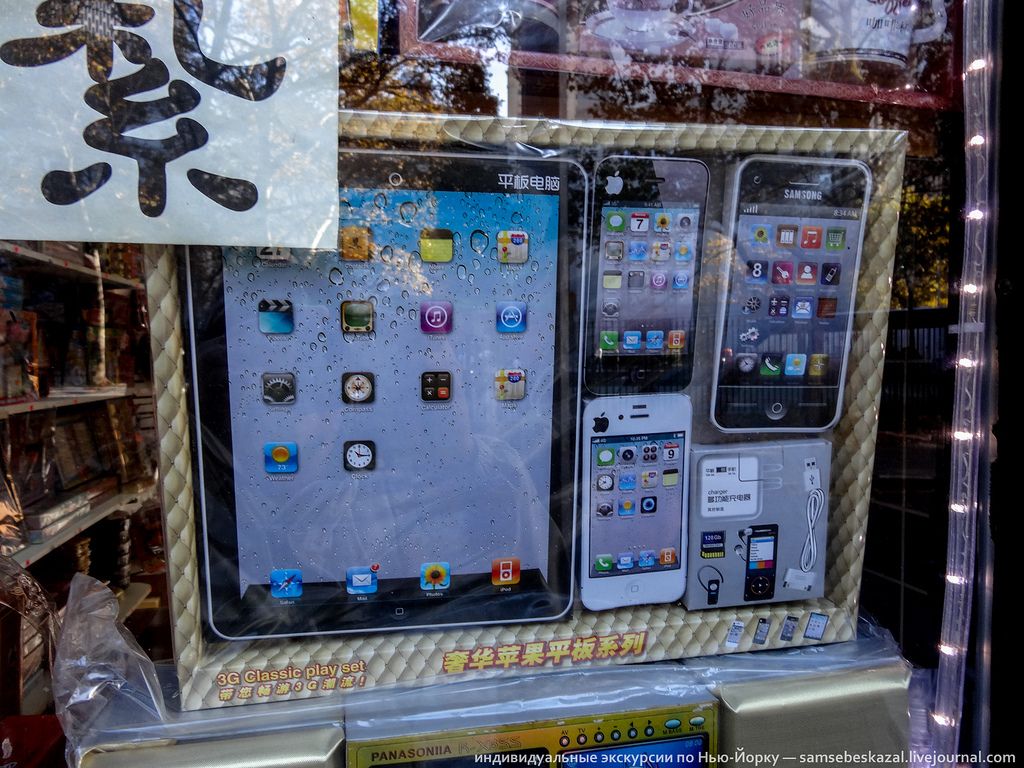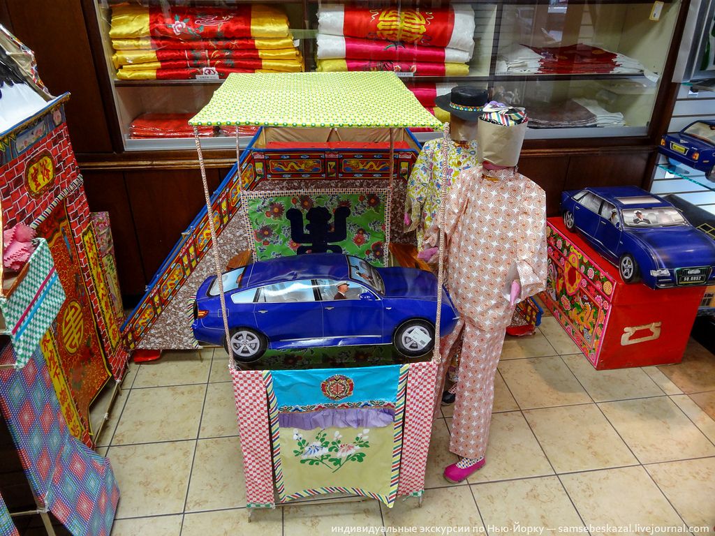 Рассказывает блогер из Нью-Йорка ака samsebeskazal: “Никогда еще витрины магазина не были столь обманчивы. Очень многим прохожим кажется, что внутри торгуют детскими игрушками или товарами для какого-нибудь хобби, типа бумажного моделизма. Некоторые даже умудряются заходить с детишками внутрь, но потом с растерянными лицами выбегают на улицу, узнав, что это на самом деле за магазин. Когда в витринах стоят ряды картонных машин и домов, а на полках лежат картонные айфоны и айпады, то ошибиться действительно не трудно. Что еще можно подумать, глядя на все это? Однако, не один из этих товаров не связан с детскими играми или увлечением по сборке моделей из бумаги. Магазины продают товары для китайских похоронных церемоний и несмотря на кажущуюся игрушечность ассортимента, внутри все более чем серьезно и имеет четкое предназначение. Подарить что-нибудь из этого магазин живому китайцу, это примерно тоже самое, что подарить вам венок с надписью “от друзей”.”