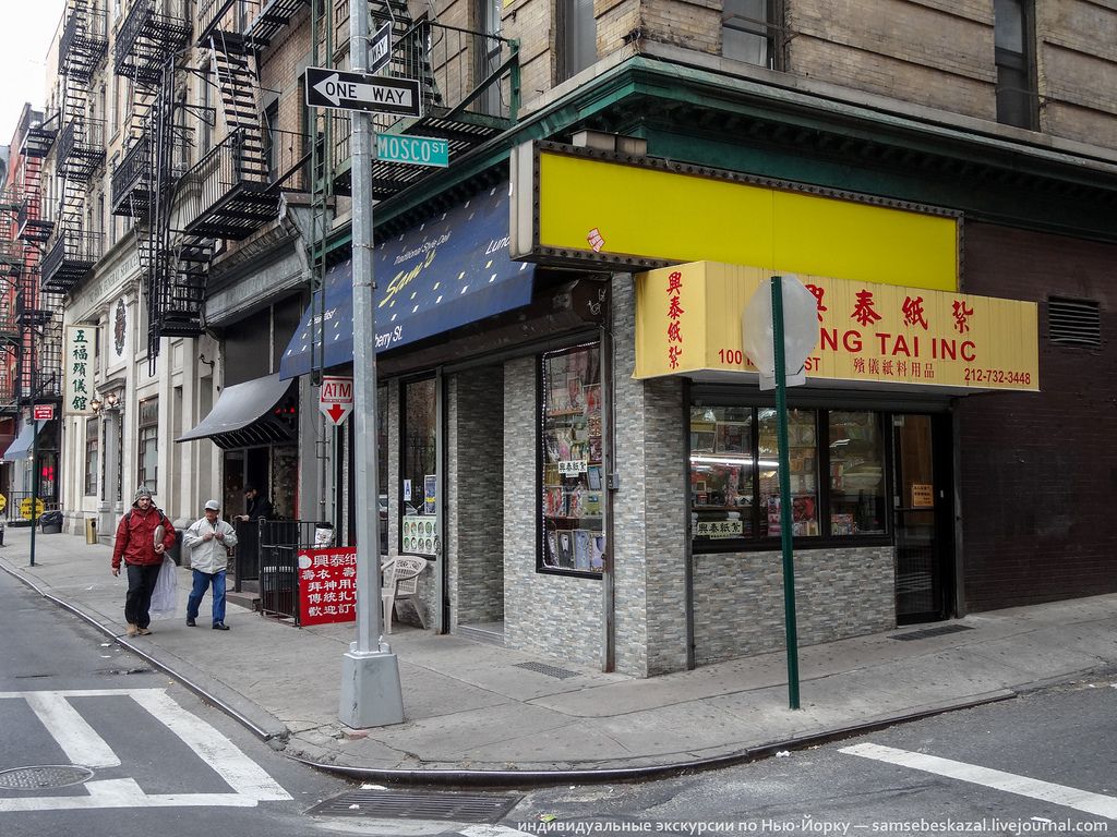 Магазин находится в манхеттенском чайнатауне в местечко под названием funeral row – “похоронный ряд” (на гуглокарте), там сосредоточены заведения связанные с этой частью человеческой жизни: церковь, несколько похоронных домов, цветочные магазины и магазины ритуальных принадлежностей товаров.