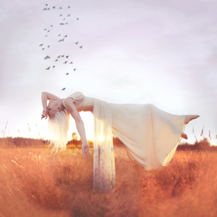 Большинство фотографий сделано на природе, художница показывает неразрывную связь, которая возникает между человеком и окружающей действительностью. Цветы, травы, небо и земля – все это рождает настоящую симфонию Красоты, запечатленную Киндрой Николь.