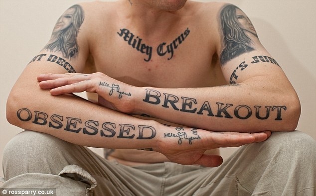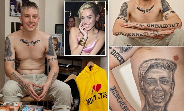 40-летнего жителя Лос-Анджелеса, Карла Макколда, можно назвать самым большим и безумным фанатом Майли Сайрус. Начиная с 2009 года он начал наносить на своё тело татуировки посвящённые этой молодой певице и на данный момент на нём насчитывается 22 татуировки с текстами из песен, цитатами и портретами Майли Сайрус.