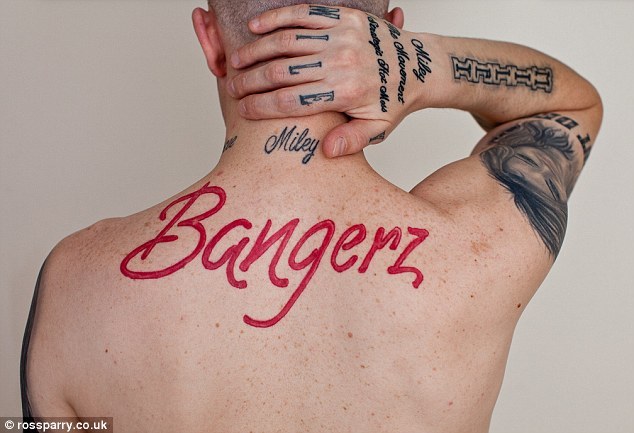 Кроме огромного портрета на левой руке, мужчина сделал татуировки с именем звёзды, названиями её альбомов и отрывками текстов песен.