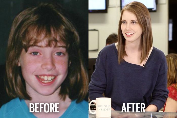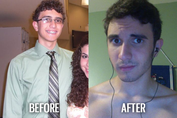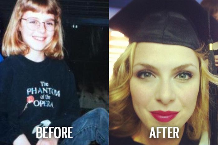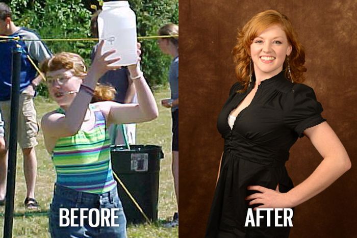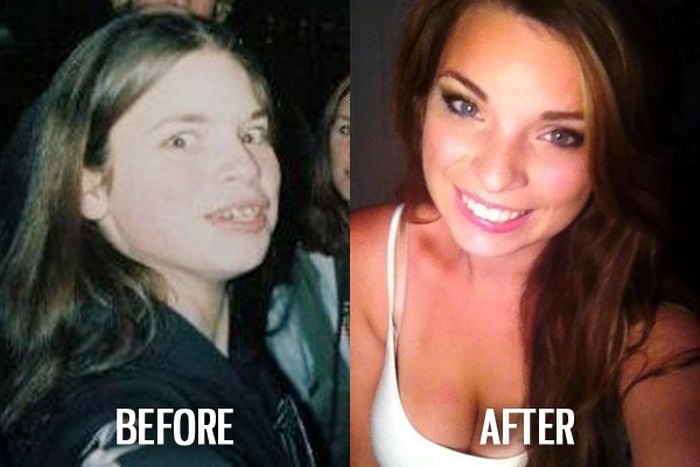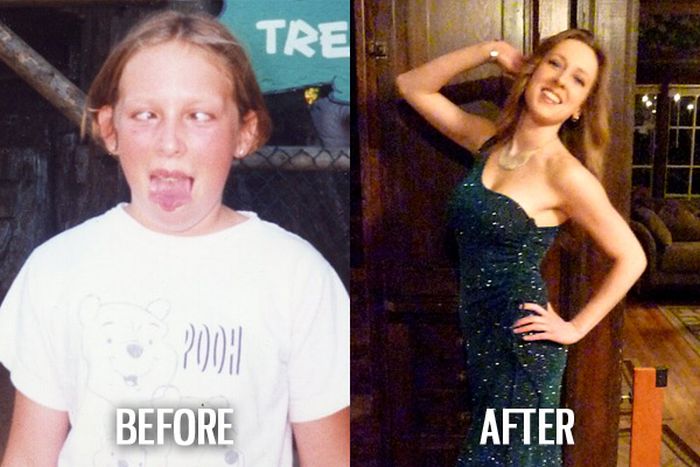 В детстве и юности многие выглядят не очень хорошо. Проблемы с весом, юношеские прыщи, неудачная стрижка и скобки на зубах- всё это ещё никому не прибавляло красоты, но в подростковом возрасте мало кому удаётся избежать этих проблем. Но став старше, эти молодые люди превратились из гадких утят в прекрасных лебедей.