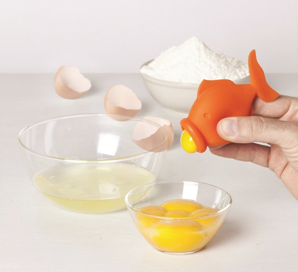 Сепаратор яичного желтка Yolkfish. Созданный дизайнерской фирмой из Тель-Авива «Peleg Design», Yolkfish умный кухонный прибор в форме рыбки, которая всасывает желтки при отделении их от белков. Нежным нажатием желтки можно вылить в любое другое место.
