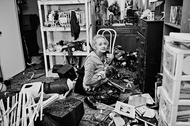 Дела насущные: Нет больше Мура. В течение 39 минут 20 мая 2013 года сильнейший торнадо с ветрами, достигавшими 337 км в час, пронесся по 27-километровому пути. Город Мур в штате Оклахома, принял на себя основной удар. 13-летняя Дестини Пирман собирает вещи из своей разрушенной спальни. Они с мамой больше всего боялись, что дом сравняет с землей, но, к их счастью, он выстоял, хоть и был разрушен. Главная забота всей семьи – лекарства и препараты для больной эпилепсией Дестини – были там, где они их и оставили. (© Melissa Golden/USA/2014 Sony World Photography Awards)