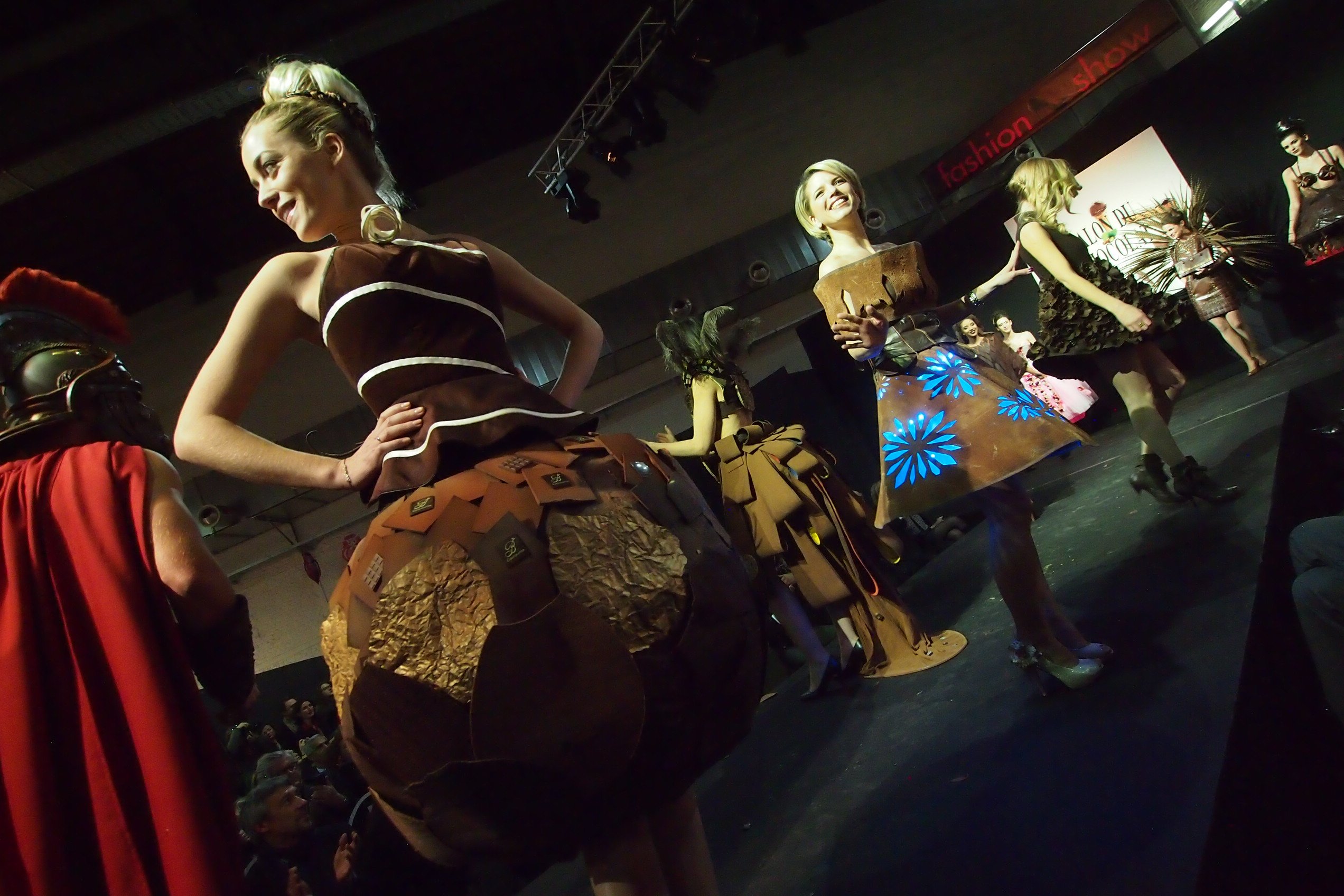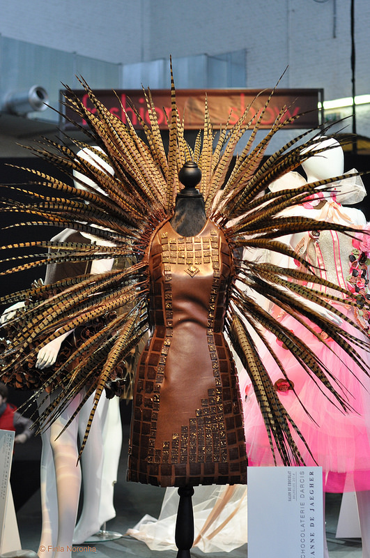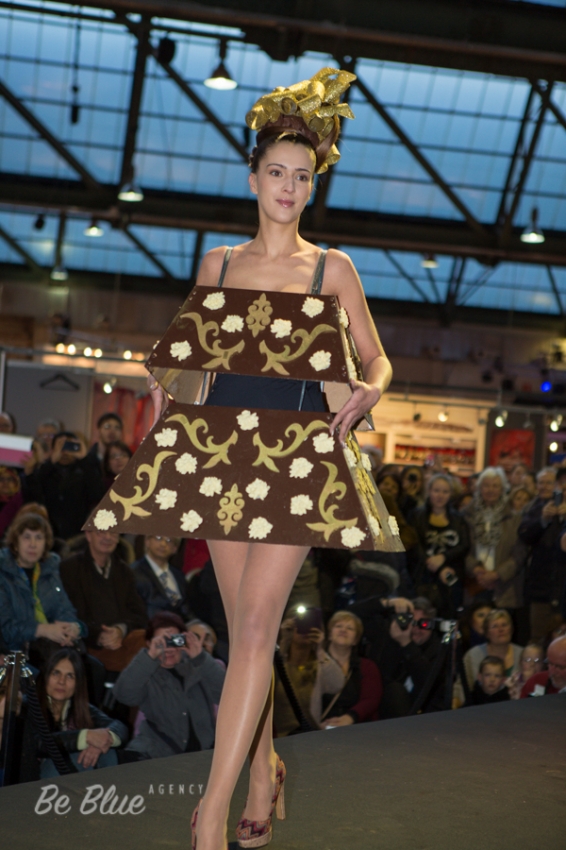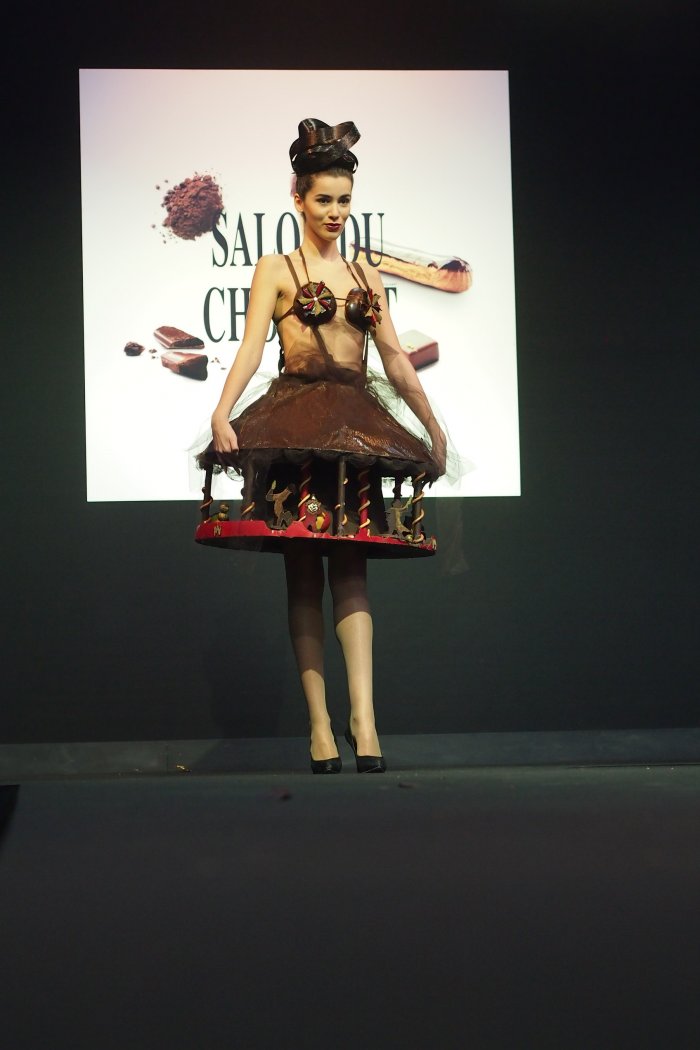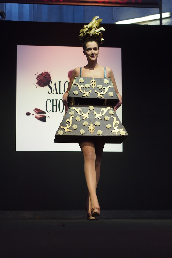 Ключевым событием «Salon du Chocolat» всегда был и остается показ мод. На подиум выходят роскошные модели в не менее роскошных, полностью съедобных нарядах. Нам всегда было невероятно интересно, как их потом съедают :)