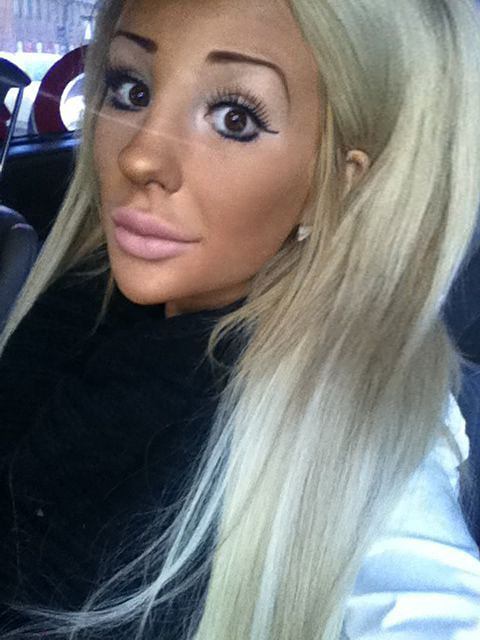 Александра "Kissie" Нильссон, 1991 года рождения, является известным шведским блоггером и звездой Facebook. В свои 23 года девушка перенесла уже 12 пластических операций, вставив силиконовые импланты в грудь, увеличив губы, а также сделав операцию для коррекции формы носа и ушей.