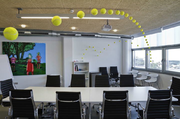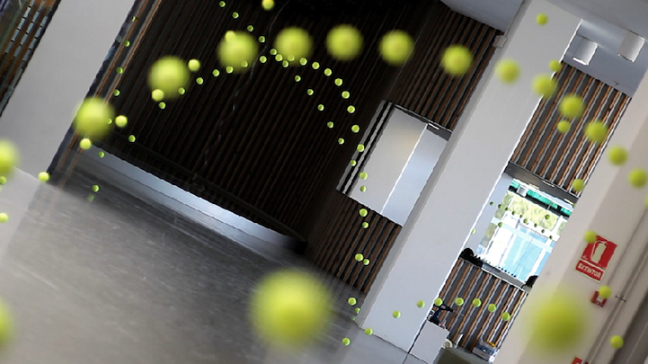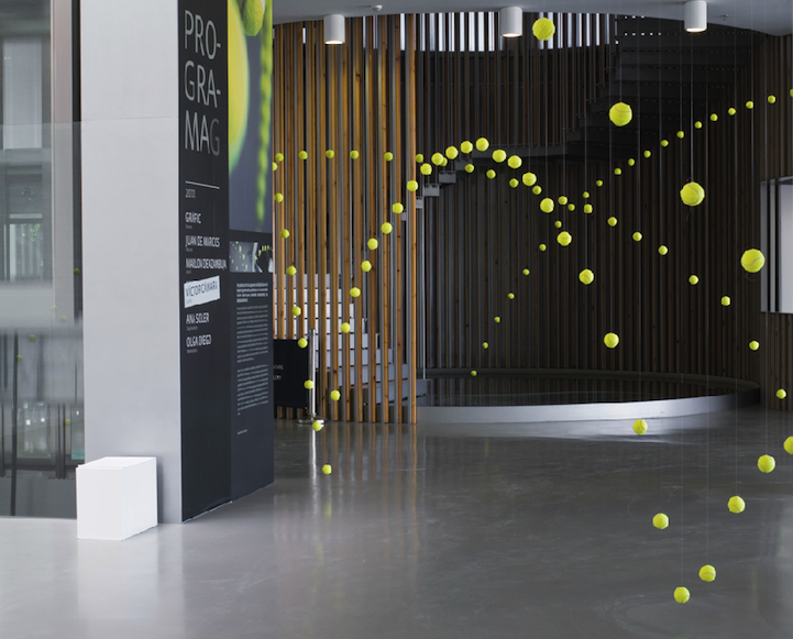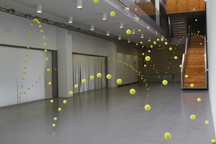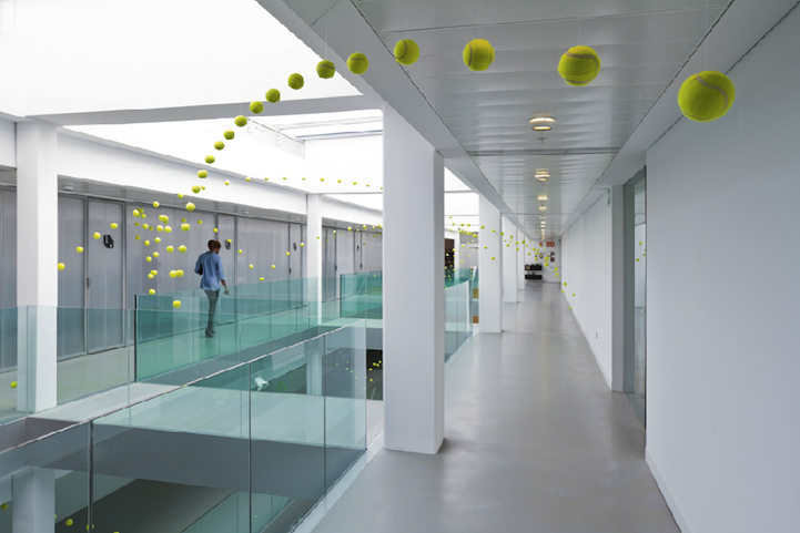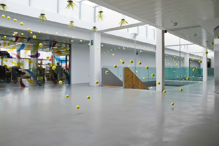 С помощью этой инсталляции, которую она называет «Причины и следствия», испанская художница Ана Солер заставляет нас сполна почувствовать себя людьми, живущими в матрице. В инсталляции было использовано 2000 теннисных мячиков, которые зафиксированы в воздухе. В результате создается иллюзия того, что мячики двигаются, отскакивая от стен, пола и потолка. Удивительная инсталляция находится в художественной галерее «Mustang Art Gallery» в Аликанте, Испания. представьте себе, сколько времени у художницы ушло на то, чтобы зафиксировать каждый из этих мячиков в необходимой позиции! Каждый мячик висит на отдельной леске,можете удостовериться глядя на это фото!