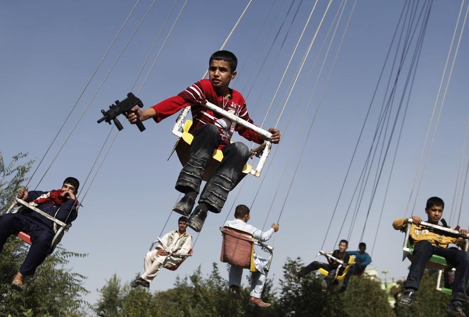Афганский мальчик с игрушечным оружием на празднике Аль-Фитр, Кабул, 20 сентября 2005 года