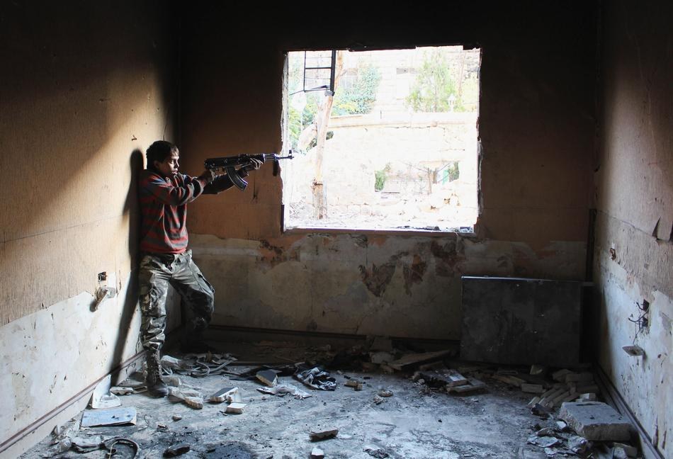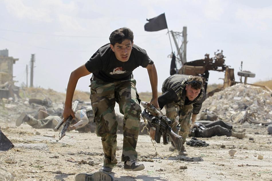 Сирийские мятежники бегут, чтобы укрыться от снайперов, 21 сентября 2013 года