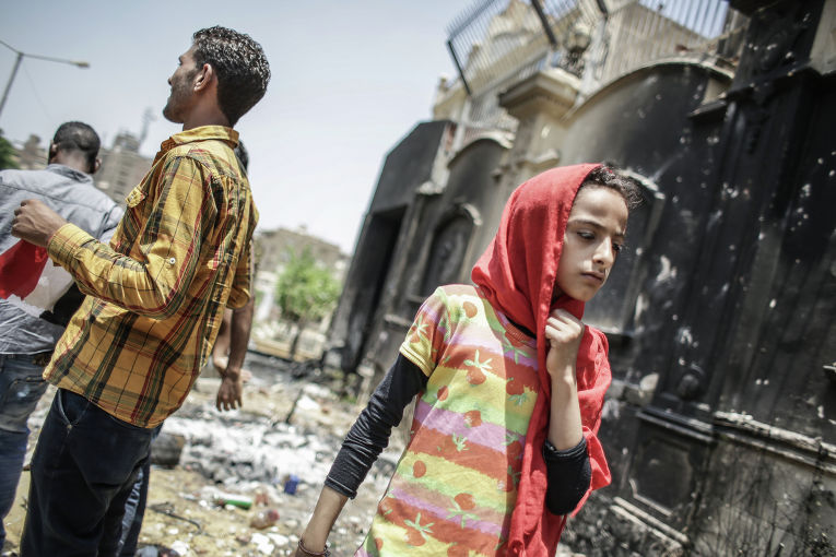Протестующие у разгромленного здания штаб-квартиры «Братьев-мусульман» в Каире