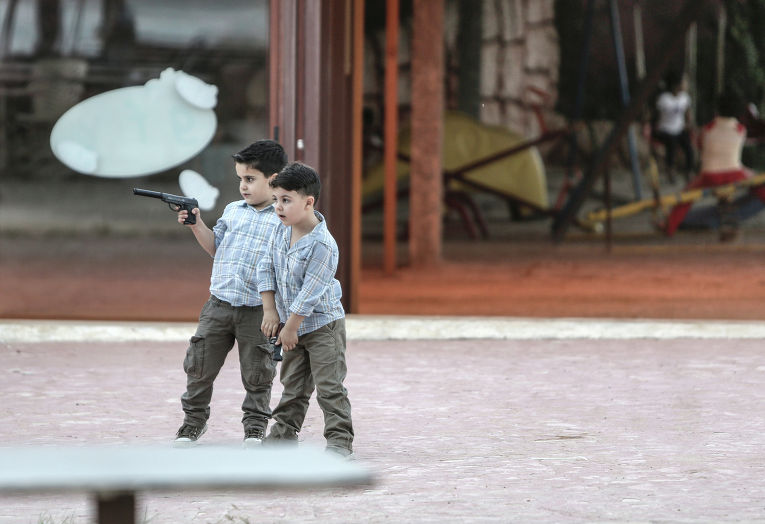 Мальчики с пистолетами играют в войну в Латакии, Сирия