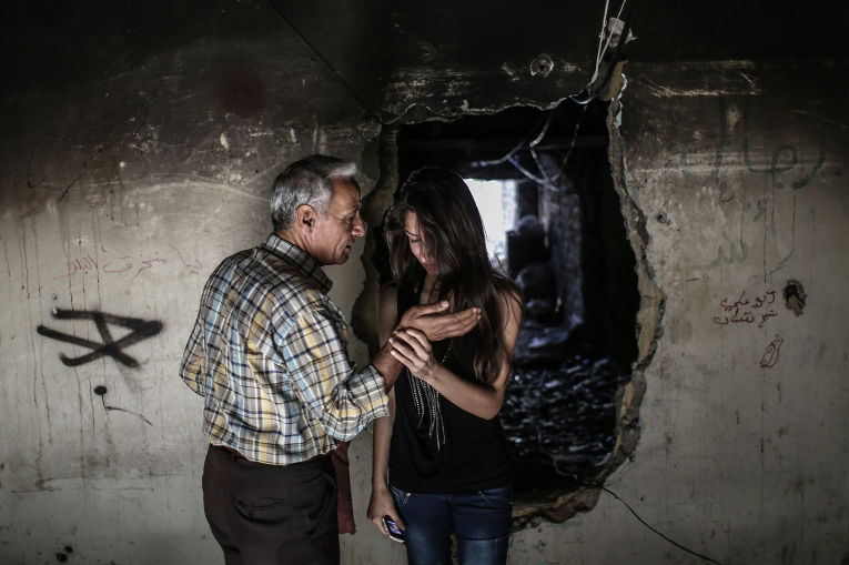Отец с дочерью, сирийские христиане, в своем доме в центре Хомса, разрушенном во время военных действий