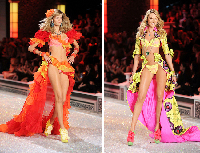 На подиум вышли 38 моделей. В этот вечер свои фигуры продемонстрировали Адриана Лима, Алессандра Амбросио, Миранда Керр, Даутцен Крез, Кэндис Свэйнпоул, Эрин Хизертон, Лили Олдридж и другие.