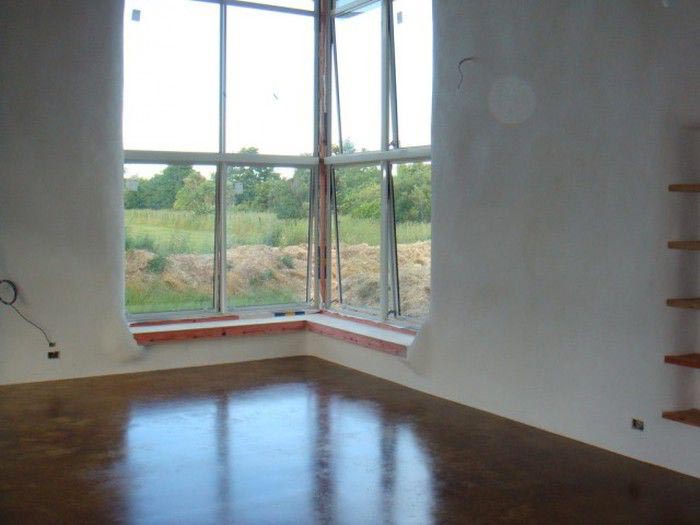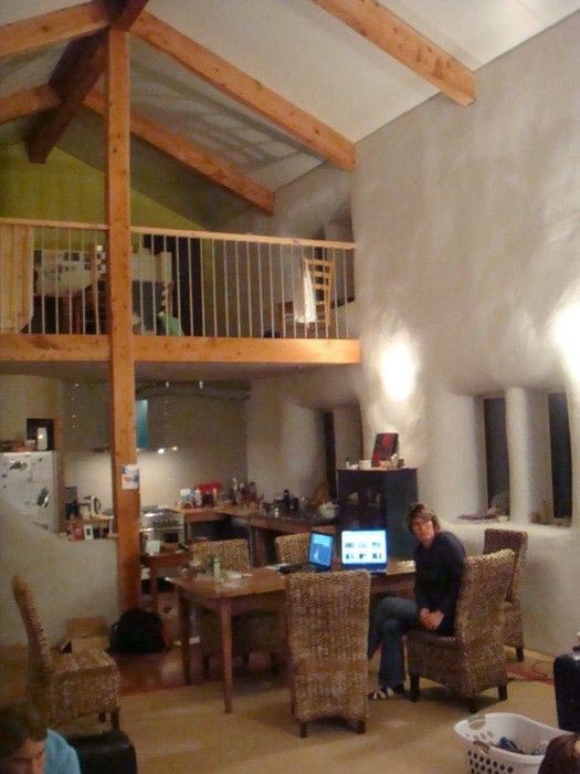Немного обжитый вид изнутри, согласитесь, совсем неплохо для дома из соломы