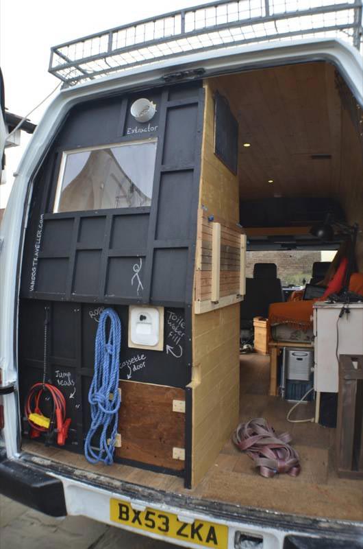 Вид задней части фургона, здесь вы можете видеть обратную сторону ванной комнаты и "прихожую"