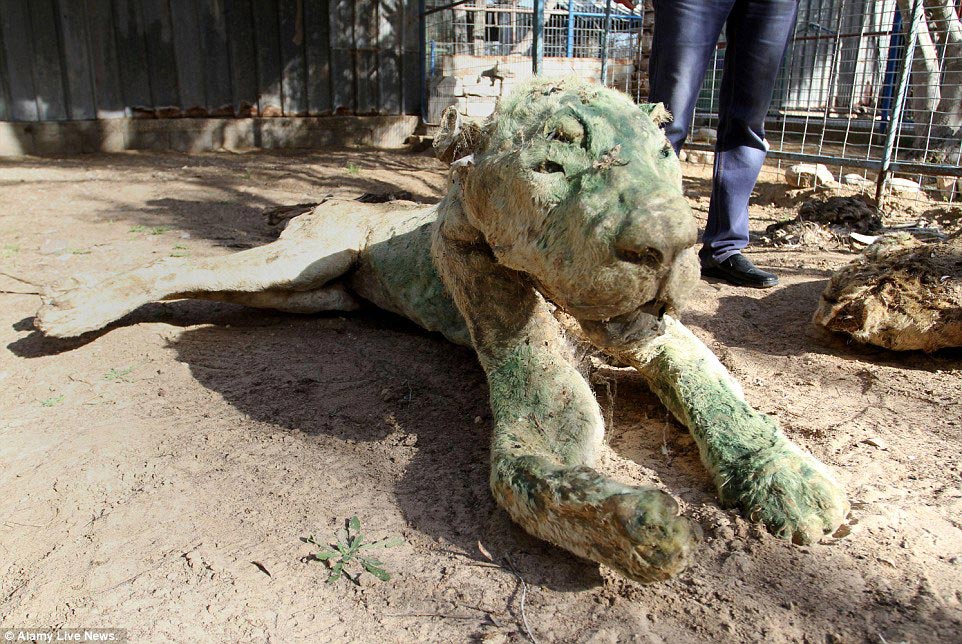 Если вы относитесь к числу впечатлительных людей, то лучше вам прямо сейчас открыть другую страничку, и почитать нечто другое. Окоченевшее тело мертвого льва, мумифицированное тело бабуина, и это всего несколько животных из десятка других, погибших в зоопарке Хан-Юнис, Сектор газа. Бедные животные были на долгое время оставлены без воды, пищи и должного ухода, поэтому большинство из них погибло мучительной голодной, обезвоженной смертью. Владелец зоопарка Мохаммед Ауэда (Mohammed Awaida) утверждает, что персонал не мог добраться до зоопарка из-за палестинского и израильского конфликта. Последнее предупреждение, впечатлительным лучше не смотреть. Мы вас предупреждали.