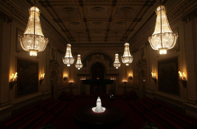 Свадебное платье герцогини Кембриджской, созданное Сарой Бертон для Александра МакКуина, в Букингемском дворце в Лондоне.