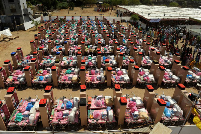 Домашная утварь и другие предметы, которые подарят мусульманским молодоженам, на складе перед массовой церемонией бракосочетания в Ахмедабаде.