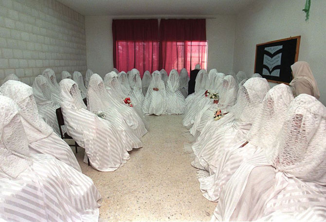 Иорданские невесты ждут начала массовой церемонии бракосочетания в Аммане.