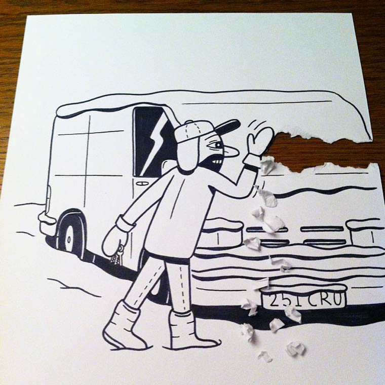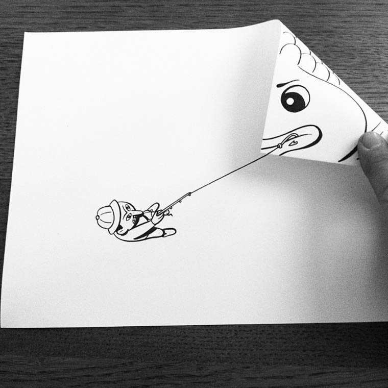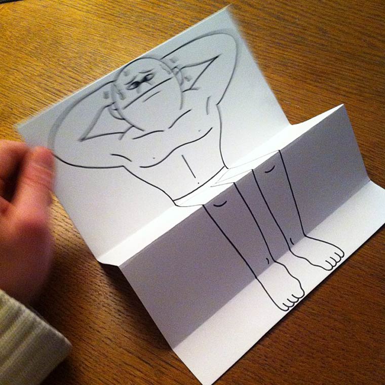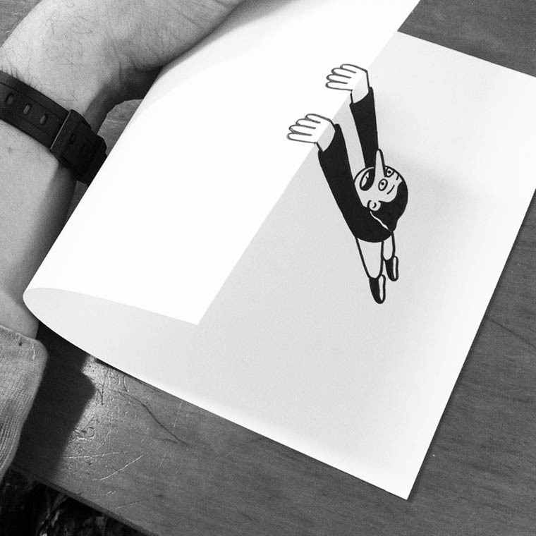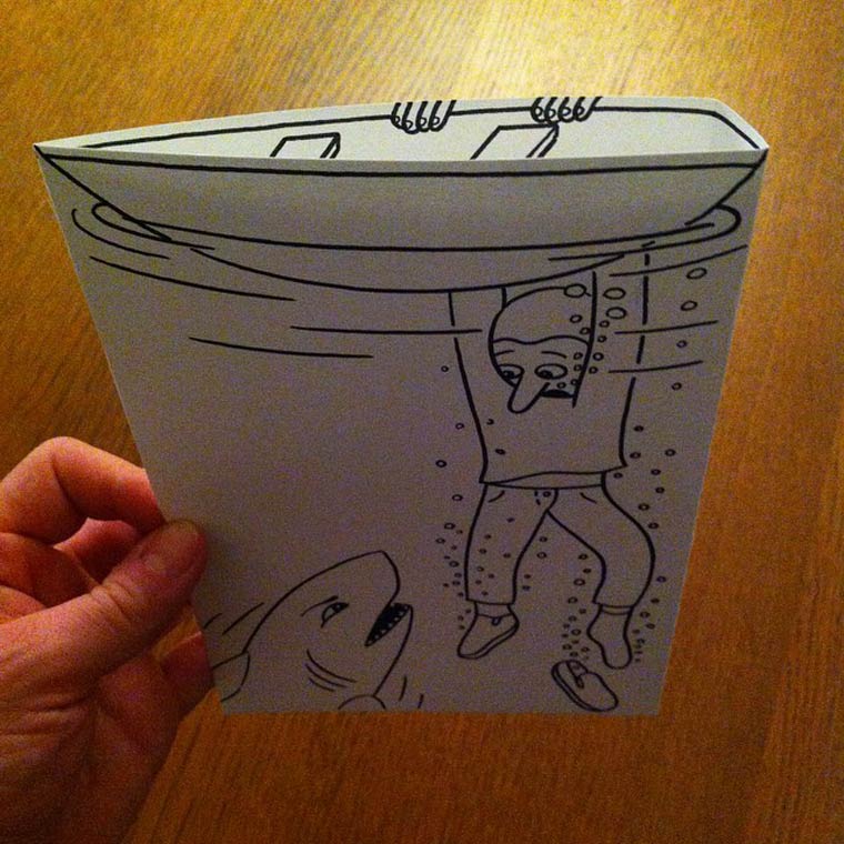 Кто бы мог подумать, что с помощью бумажных изгибов можно создавать впечатляющие оптические иллюзии. Например, об этом мог подумать датский художник из Копенгагена под псевдонимом HuskMitNavn. Этот креативный датчанин любит смешивать белые листы бумаги с нарисованными на них черным маркером иллюстрациями с реальностью, используя для этого необычное связующее звено - обычные бумажные изгибы. Добро пожаловать в бумажный мир, и поверьте, вы не будете разочарованы.