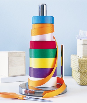 Сделайте из держателя для бумажных полотенец держатель для ленточек.