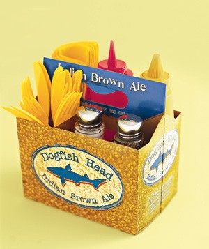 Коробку из-под пива можно превратить в держатель для соли, перца, соусов и салфеток.
