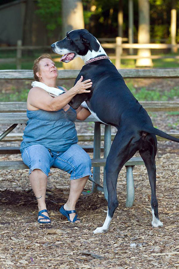 Высота Новы, большой датской догини из Иллинойса составляет 89,2 см, а вес – 72,5 кг.