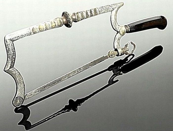 Инструмент приводился в действие руками, использовался для пропиливания костей черепа при операциях.