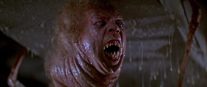 Говоря о «Нечто», в первую очередь мы вспоминаем, конечно, картину Джона Карпентера 1982-го года. И говоря о монстрах в кино – тем более ее, потому как в 1951-м году, в фильме «Нечто из другого мира», инопланетное существо было совершенно другим, по сегодняшним меркам – не таким уж и страшным. Картина же Карпентера производит серьезное впечатление и в нынешнюю пору. Художники разработали не просто пугающий, но и отталкивающий образ чего-то, что способно принимать самые разные формы, и в первую очередь – внедряться в человека. А режиссер прекрасно уловил атмосферу всепоглощающего страха, когда не понимаешь, кто перед тобой – человек, или уже нет. Многие видят сходство получившегося существа с Чужим – и следует согласиться с тем, что определенная родственная связь действительно присутствует. Но если все-таки они и братья – то очень дальние, и фильм в любом случае хуже от этого не становится. Хотя в год выхода картина была принята довольно прохладно: ее премьера состоялась всего через две недели после того, как мир познакомился с дружелюбным «Инопланетянином» — и злобное «Нечто» оказалось явно некстати. Говорят, что на показах «Нечто» зрители пачками выбегали из залов, зажимая руками рот — и в это охотно верится.
