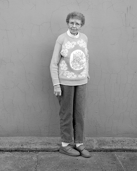 «Я родилась в Оксфорде. Мой отец был кузнецом. У меня невропатия. Что-то вроде очень сильного артрита. Я пытаюсь ходить с палкой, но это нелегко. Завтра иду в супермаркет, чтобы поговорить со страховым агентом насчет бесплатных лекарств. Надеюсь, что-нибудь выяснится. Двое из наших сыновей были ранены во Вьетнаме. Одному прострелили бедро, другому — плечо. Если бы у меня сейчас были сыновья призывного возраста, я бы увезла их в Канаду. У нас сейчас худший президент. У нас столько долгов, что я не знаю, как теперь все это уладить. Мы живем в этом доме уже очень давно, шестьдесят один год. Мы купили его в 1944 году. Тогда мы заплатили за него 1650 долларов. Раз в месяц мы все вместе ездим в Таму, чтобы поиграть в бинго и на игровых автоматах. Много денег мы с собой никогда не берем. Каждый день я молюсь. Если веришь в Бога и ходишь в церковь, больше ничего не нужно. Я люблю печь, особенно калачи».