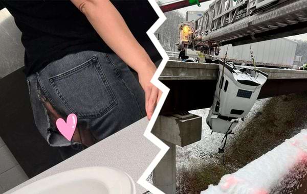 Этот случай произошел в США, где, как сообщается, водитель грузовика не справился с управлением из-за сильного снегопада. В результате аварии он повис в кабине на мосте на высоте 30 метров 😱
