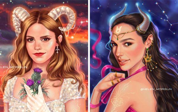 Художница изобразила 12 звёзд в виде знаков зодиака, которые соответствуют дате их рождения арт 20.12.2021 300