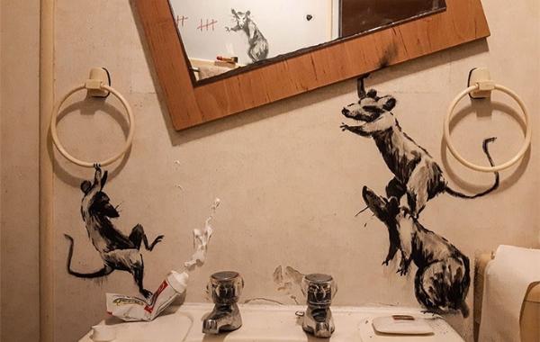 Бэнкси нарисовал крыс, разрушивших ванную и его жена ненавидит, когда он работает из дома арт 16.04.2020 801