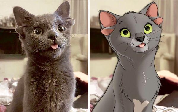 Художница очаровательно перерисовывает питомцев, показывая, как они могли выглядеть, будучи героями Диснея милое 09.08.2022 378
