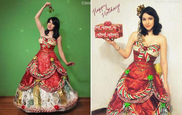 Девушка создаёт платья из упаковочной бумаги, оставшейся после рождественских праздников дизайн 28.12.2017 657