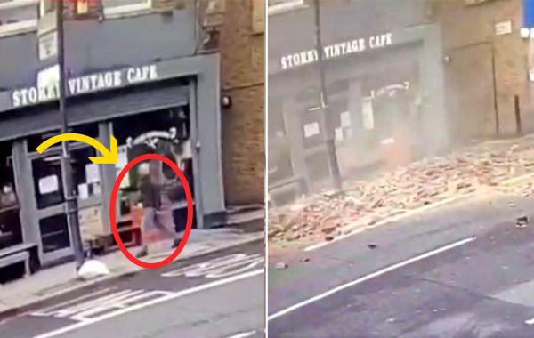 Камера безопасности записала, как парень едва не погиб под обрушившимся зданием Видео-приколы 12.03.2019 174