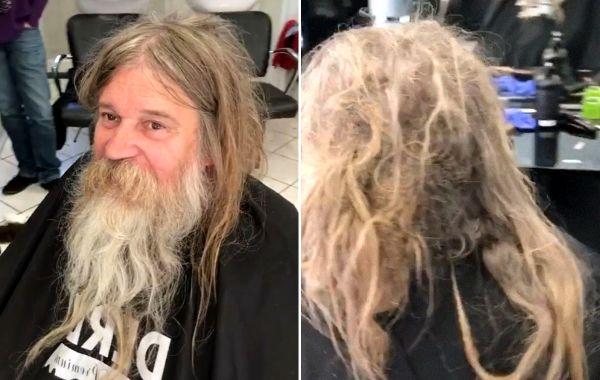 Парикмахер бесплатно подстриг бездомного и на фото «после» он выглядит другим человеком люди 21.01.2021 851