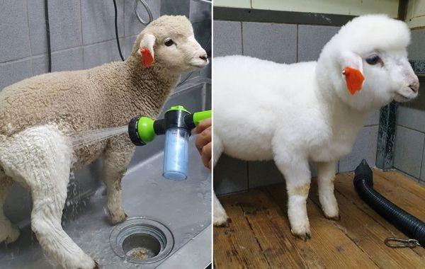 Овечье кафе в Южной Корее делится вирусными фотографиями ягнят до и после купания Животные 16.03.2020 576