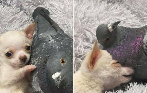Бескрылый голубь подружился со щенком, который не может ходить и это идеальная дружба Животные 18.02.2020 698