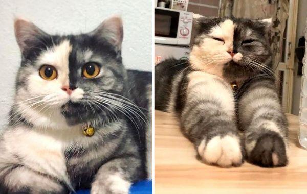 Кэт — двуликая кошка с двухцветной мордочкой, которая имеет по-настоящему уникальный окрас Животные 11.06.2020 1330