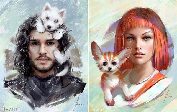 Российский художник изобразил героев фильмов с их «духовными» питомцами и они похожи арт 25.03.2019 318
