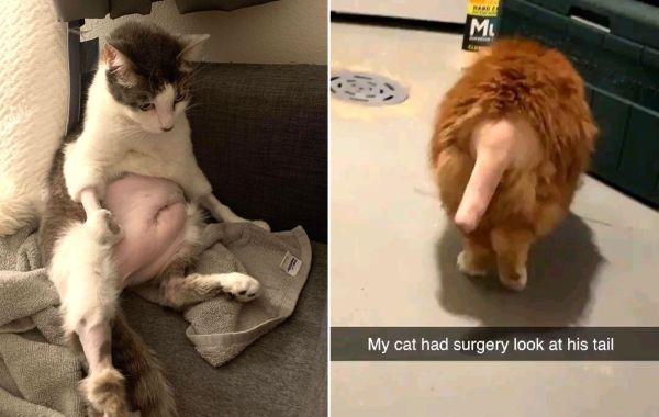 16 смешных кошек, которых побрили перед операцией и теперь у них голые пузики и лысые хвосты Смешное 18.09.2020 917