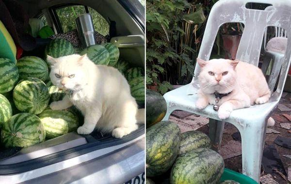 Злой кот охраняет арбузную ферму в Таиланде, и к нему точно не хочется приближаться Животные 23.06.2020 705
